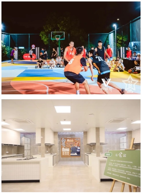 一方面是社區(qū)配套的提供,社區(qū)籃球場、全家便利店、菜鳥驛站、書店、健身房、共享餐廳、共享廚房、自習(xí)室、桌球室等當(dāng)下年輕人所需的生活配套設(shè)施。