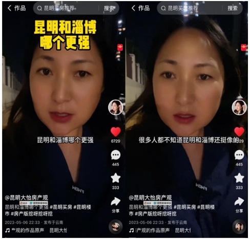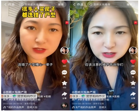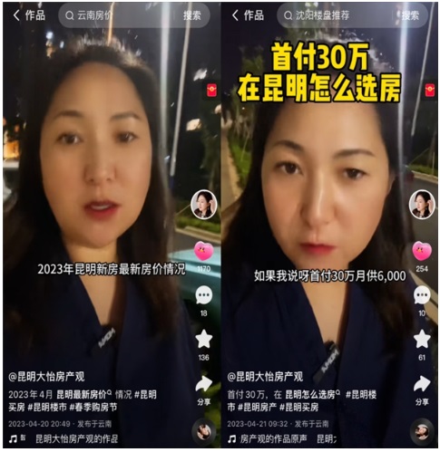 “直播賣房一看專業(yè)度,二看信任度!比缃,大怡已經(jīng)形成了自己的短視頻內(nèi)容規(guī)劃體系,一類屬于‘泛話題’,“房產(chǎn)畢竟是小眾內(nèi)容,想要吸引更多潛在客戶,就需要具備更強(qiáng)的關(guān)聯(lián)性,比如最近淄博燒烤爆火,就可以通過‘淄博與昆明的相同和不同’為切入點(diǎn)進(jìn)行一些解讀”;另一類是更為垂直的內(nèi)容,地產(chǎn)的相關(guān)知識、房產(chǎn)稅等新聞事件的解讀等等。
