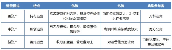 目前,市場(chǎng)上長租公寓業(yè)務(wù)的運(yùn)營模式主要包括重資產(chǎn)持有運(yùn)營模式、中資產(chǎn)租賃運(yùn)營模式以及輕資產(chǎn)委托運(yùn)營模式。在當(dāng)前經(jīng)濟(jì)面臨較大的下行壓力下,長租公寓運(yùn)營方被倒逼選擇輕資產(chǎn)的運(yùn)營方式。