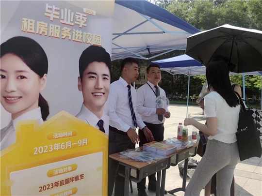 “我想租個便宜點,周邊又有地鐵的房子!”“我的工作地點在望京,附近有什么可以推薦的房子?”“公司有什么優(yōu)惠舉措?”在北京工業(yè)大學(xué)的我愛我家展臺上,經(jīng)紀(jì)人耐心解答大學(xué)畢業(yè)生每一個租房問題。作為住房租賃頭部企業(yè),我愛我家積極響應(yīng)并參與“畢業(yè)季租房服務(wù)進(jìn)校園”活動,以黨建為引領(lǐng),冒著高溫酷暑天氣走進(jìn)中國地質(zhì)大學(xué)、華北電力大學(xué)、首都經(jīng)貿(mào)大學(xué)、北京工業(yè)大學(xué)、北京物資學(xué)院、中國戲曲學(xué)院等高校,以最大的優(yōu)惠、最好的服務(wù)助力大學(xué)畢業(yè)生“住有所居”。