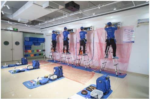 圖為輕喜到家空調(diào)清洗養(yǎng)護(hù)培訓(xùn)課現(xiàn)場(chǎng)