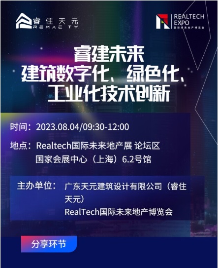 由RealTech國(guó)際未來(lái)地產(chǎn)博覽會(huì)與睿住天元聯(lián)合主辦“睿建未來(lái)——建筑數(shù)字化、綠色化、工業(yè)化技術(shù)創(chuàng)新論壇”將于博覽會(huì)同期召開(kāi)。