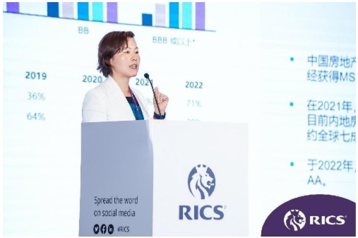 圖 | 仲量聯行大中華區(qū)評估咨詢服務部 大灣區(qū)拓展總監(jiān)陳曼藝帶來主旨演講:“數字化時代中的房地產ESG 策略 如何降低環(huán)境風險及提升資產價值”