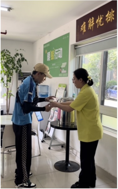 根據(jù)萬(wàn)科物業(yè)前期調(diào)研,快遞和外賣(mài)小哥普遍存在“充電難、飲水難、如廁難”的難題。在“暖蜂驛站”內(nèi),提供手機(jī)充電、無(wú)線(xiàn)網(wǎng)絡(luò)、免費(fèi)飲水等便捷服務(wù),配備飲水機(jī)、微波爐、醫(yī)藥箱等便民設(shè)施,可充分保障小哥們“渴了能喝水、累了能歇腳、飯涼能加熱、沒(méi)電能充電”,以此打造社區(qū)“小蜜蜂”溫暖之家。