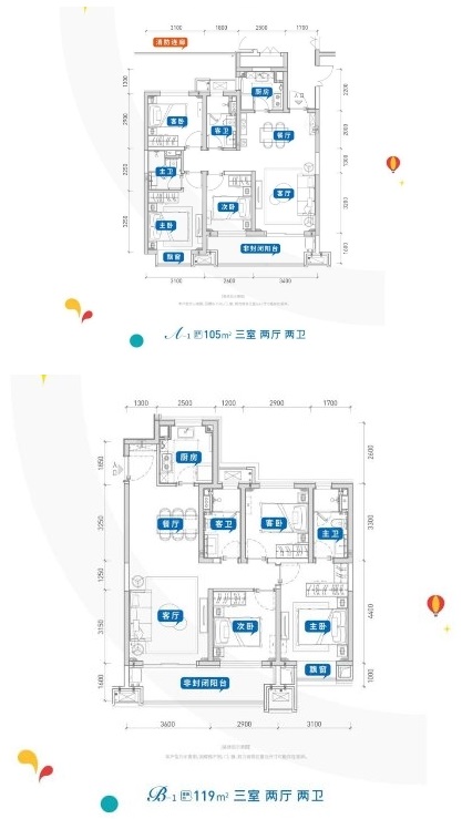 主臥、次臥、客廳朝南依次布局,約13米超大采光面,自成一方溫暖居境;朗闊客廳疊加陽臺(tái),讓全家盡享陽光,也擁有瞰盡美景的無敵視野;主臥套房科學(xué)規(guī)劃設(shè)計(jì),配置齊全,搭配專屬衣帽間和獨(dú)立衛(wèi)浴,為人生營造私享時(shí)光;廚房、衛(wèi)浴空間皆搭配明窗,打造通透明亮的居住體驗(yàn)。戶型以美好生活為原點(diǎn),既能妥帖收藏父母的溫情時(shí)光,又能盛放孩子成長的快樂。