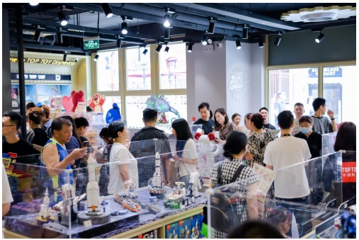 數(shù)據(jù)顯示,今年一季度,TOP TOY營收近1.4億元,同比增長24%;二季度,TOP TOY營收達(dá)1.7億元,同比增長81%,該季全國客流破1000萬人次,單店業(yè)績創(chuàng)新高。截止目前,TOP TOY共有逾120家線下門店,其中包括7家夢工廠店和超110家潮玩集合店。