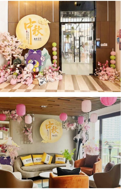 越秀星寓門店也已早早布置成中秋主題,粉色的花海和各色的“月燈”裝置讓星友住戶更沉浸式感受節(jié)日氛圍,特有的儀式感讓這個中秋別樣溫馨。