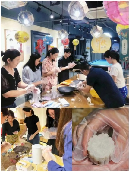 活動當(dāng)天晚上,7點一到,各位住戶們紛紛聚在一起準(zhǔn)備DIY冰皮月餅。越秀星寓的管家們早已提前準(zhǔn)備好料及工具,更安排專人在現(xiàn)場貼心講解步驟和做法。星友住戶們根據(jù)自己的口味和創(chuàng)意,選擇餡料和模具,用巧手復(fù)刻一個個顏值與美味并存的冰皮月餅;顒幼詈笮怯炎魝儸F(xiàn)場共品團(tuán)圓至味及留影,月餅的甜味絲絲入心,溫暖的場景既加深了節(jié)日記憶,又增進(jìn)了鄰里感情。