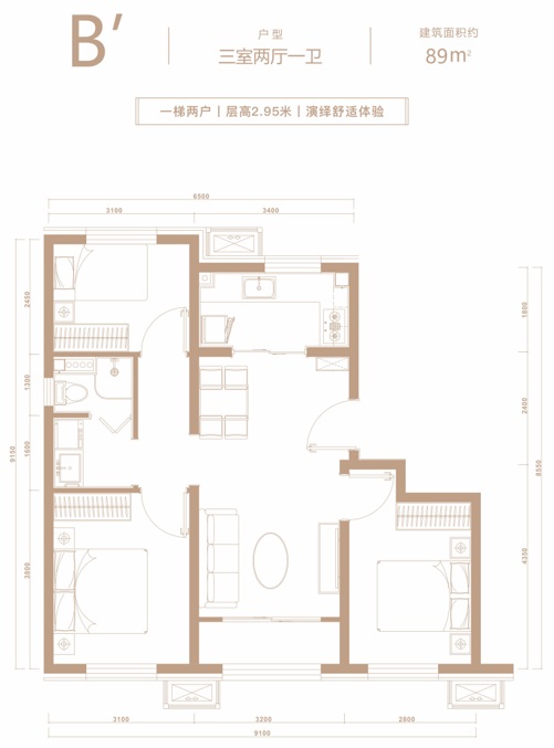 項目在戶型空間設(shè)計上兼顧了“功能性”與“舒適性”。建面約80㎡的兩居,動靜分區(qū),南向主臥帶獨立衛(wèi)生間與陽臺,視野開闊,廚房、餐廳與客廳的動線流暢,滿足家庭多元活動需求;建面約89㎡三居,雙南向臥室布局,視野更寬闊,采光面積更大,客廳等活動空間寬敞,餐廚一體設(shè)計更加便捷,居住體驗十分舒適。