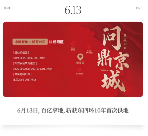 在東四環(huán)這個(gè)中國豪宅主場,10年未有新供地,此前大多是全球文化舶來、文化融合作品。正如所有偉大的開創(chuàng),都有一個(gè)不平凡的伏筆。大國文化自信,中建智地順應(yīng)時(shí)代審美,精耕中國作品北京宸園,市場也給予了強(qiáng)大回響;仡欉@123天,北京宸園展現(xiàn)了中建智地的操盤速度和實(shí)力:6月13日,百億拿地,斬獲東四環(huán)10年首次供地;