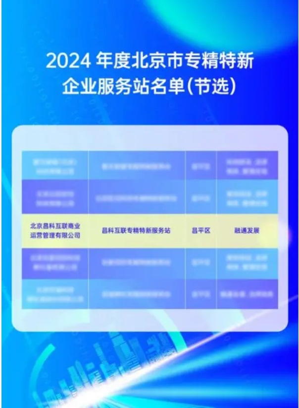 近日,北京市經(jīng)濟(jì)和信息化局在其官網(wǎng)上發(fā)布《北京市經(jīng)濟(jì)和信息化局關(guān)于對(duì)2024年度北京市專精特新企業(yè)服務(wù)站名單進(jìn)行公示的通知》,昌發(fā)展龍域中心成功入選《2024年度北京市專精特新企業(yè)服務(wù)站名單》。