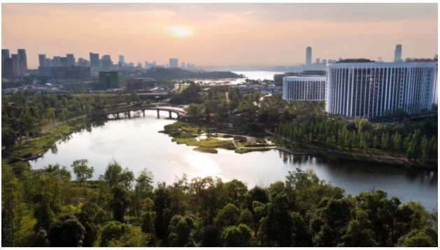 在生態(tài)景觀布局方面,打造天府望山廊、天府森林等城市生態(tài)廊道;創(chuàng)新生態(tài)場景營造,興隆湖成功入選首批全國水上國民運動休閑中心試點單位,鹿溪濕地公園、官塘生產(chǎn)隊、天府公園等一批生態(tài)復合場景,將自然景觀和國際現(xiàn)代文化,植入美食旅居、文創(chuàng)休閑、生態(tài)體驗、博覽展示等多元功能,將生態(tài)價值轉(zhuǎn)化為經(jīng)濟價值和社會價值。
