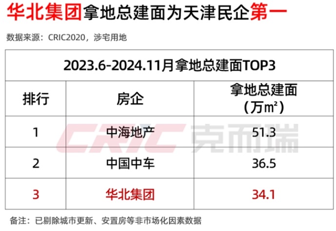自去年6月以來,一年多的時(shí)間里,華北集團(tuán)接連拿取3宗宅地,拿地總建面約34.1萬㎡,從規(guī)模上看,位列同期天津房企拿地面積第三、民企第一(數(shù)據(jù)來源CRIC)。