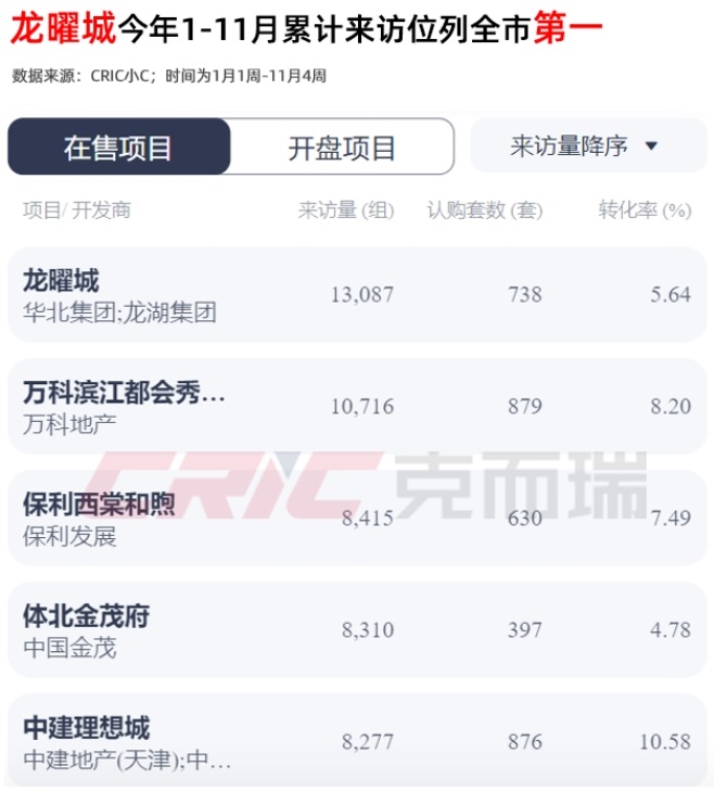 2024年1月-11月,龍曜城更是以驚人的13087組累計(jì)來訪量穩(wěn)居全市第一,成為天津住宅市場當(dāng)之無愧的現(xiàn)象級(jí)紅盤。