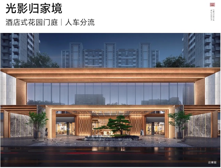璽院建筑外立面對標市場中10萬+的豪宅標桿作品常用的玻璃幕墻+天然石材+鋁板的設(shè)計,以灰白青石為主色,同時搭配了淡金色的線條,玻璃幕墻不僅在生產(chǎn)和運輸過程中需要嚴格的質(zhì)量控制,而且安裝工藝復(fù)雜,需要高精度的加工和安裝技術(shù),且涉及高性能的安全設(shè)計,對安全性和抗風(fēng)壓性有著嚴格要求,為此璽院特地在南向配置了旭格系統(tǒng)窗,作為系統(tǒng)窗的“鼻祖”,防風(fēng)性能達國標9級,保溫性能達國標10級。山墻采用的全天然石材,在開采、運輸和加工過程同樣耗費巨大,因此其造價通常較為昂貴。如此精益求精的設(shè)計,方能打造出兼具東方審美與國際風(fēng)向的“天鏡云瀑”,實用耐用且外觀典雅,歷久彌新。從遠處望去,整個建筑散發(fā)出氣度不凡的東方神韻。