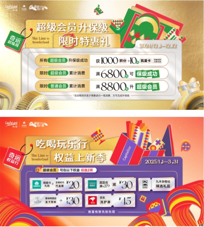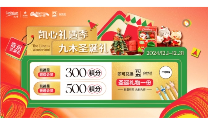 此次活動(dòng)凱德星聯(lián)合文創(chuàng)雜貨集合店品牌【九木雜物社】為會(huì)員獻(xiàn)上獨(dú)家驚喜,12月期間,超級會(huì)員憑300積分、普通會(huì)員憑500積分即可兌換九木雜物社限定圣誕禮一份;2025年1月起還有更多超級會(huì)員專享禮遇,為凱德星會(huì)員打造創(chuàng)意品質(zhì)生活體驗(yàn)。