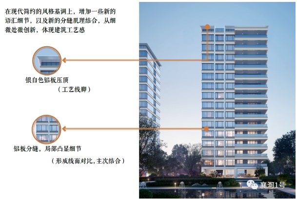 在造價(jià)方面,鋁板特殊的施工工藝導(dǎo)致施工成本較高,襄河·1號(hào)不惜成本采用大面玻璃+鋁板立面,只為呈現(xiàn)全椒封面級(jí)人居的品質(zhì)感。