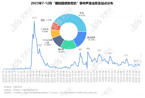 圖2:2023年7-12月“碧桂園暴雷”事件聲量走勢(shì)及站點(diǎn)分布