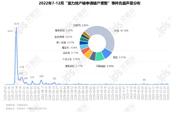 圖4:2023年7-12月“富力地產(chǎn)被申請(qǐng)破產(chǎn)重整”事件負(fù)面聲量分布