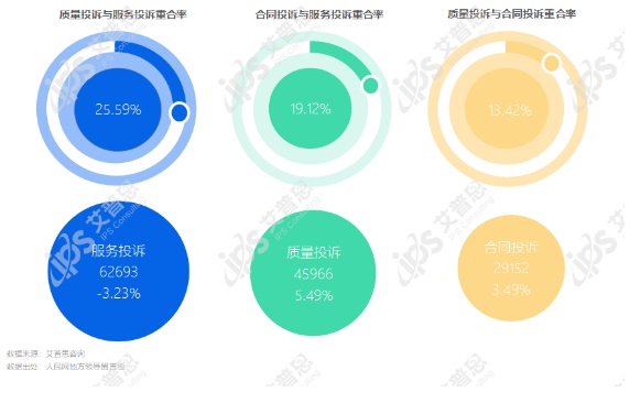 2023年,質(zhì)量投訴與服務(wù)投訴重合率25.59%,較去年下降5.94%;合同投訴與服務(wù)投訴重合率19.12%,較去年增長(zhǎng)2.53%;質(zhì)量投訴與合同投訴重合率為13.42%,較去年增長(zhǎng)8.50%。