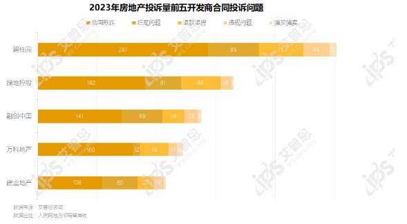 圖18:2023年房地產(chǎn)投訴量前五開發(fā)商合同投訴問(wèn)題
