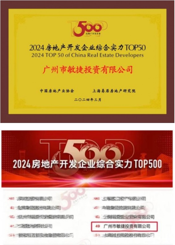 2024年3月20日,由中國房地產(chǎn)業(yè)協(xié)會、上海易居房地產(chǎn)研究院共同主辦的“新模式 新發(fā)展·中國房地產(chǎn)企業(yè)發(fā)展高峰論壇”在北京順利啟動;顒赢(dāng)天,“2024房地產(chǎn)開發(fā)企業(yè)綜合實力TOP500測評成果”榜單正式發(fā)布,敏捷集團憑借優(yōu)秀的企業(yè)綜合實力、穩(wěn)健的高質(zhì)量發(fā)展能力、良好的市場口碑等,榮膺“2024房地產(chǎn)開發(fā)企業(yè)綜合實力TOP50”第49位,這是敏捷集團首次躋身前50強,同時也是敏捷集團連續(xù)八年蟬聯(lián)“中國房地產(chǎn)開發(fā)企業(yè)100強”。
