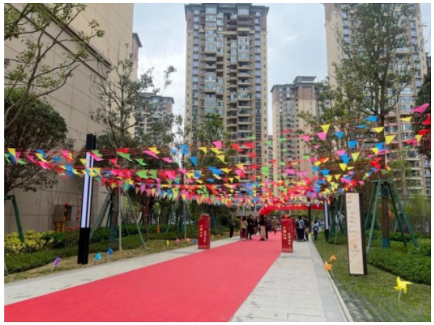 如果說生活是一場繽紛的旅程,那么家則是一切精彩的歸宿。為了讓業(yè)主感受到家的溫暖和關(guān)懷,交付現(xiàn)場,工作人員用喜慶的交付裝飾將家園精心裝扮。溫馨的歡迎標(biāo)語、喜慶的紅毯陳鋪、火紅的燈籠高掛、繽紛的彩旗飄揚,一物一景都以最佳的姿態(tài)迎接業(yè)主回家。