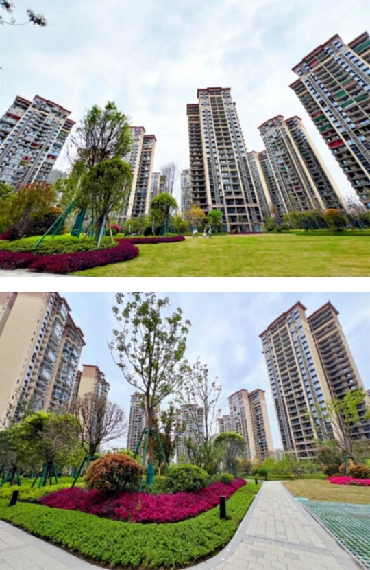 園林不僅是賞心悅目的風(fēng)景,更是美好生活的延展。項目園林景觀通過大小喬木、灌木、混合花卉搭配組合,形成高低錯落、色彩多變的植物景觀,讓居住的舒適度與幸福感直線上升。精致的雕塑點綴在融融綠意中,總是讓人不經(jīng)意間一抬眼就能遇見驚喜。