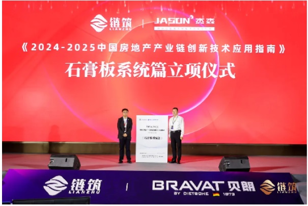 鏈筑分會(huì)副秘書(shū)長(zhǎng)張旭先生;杰森新材料有限公司戰(zhàn)略合作開(kāi)發(fā)總經(jīng)理孫東升先生為“石膏板系統(tǒng)篇”應(yīng)用指南啟動(dòng)立項(xiàng)。