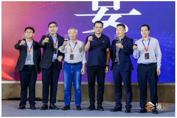 住建部市場(chǎng)監(jiān)管司原副司長(zhǎng)劉哲先生;德國(guó)貝朗(中國(guó))副總裁楊磊先生;鏈筑分會(huì)副秘書(shū)長(zhǎng)、華南區(qū)秘書(shū)長(zhǎng)李守飛先生;鏈筑分會(huì)副秘書(shū)長(zhǎng)、華東區(qū)秘書(shū)長(zhǎng)鮑磊先生;鏈筑分會(huì)副秘書(shū)長(zhǎng)張旭先生與馬學(xué)明秘書(shū)長(zhǎng)共同為華南站論壇答謝晚宴祝酒。