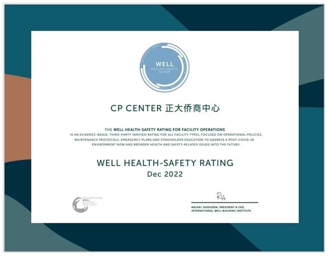 圖注:北京正大中心獲“IWBI(國際WELL建筑研究所) WELL HSR 健康安全評(píng)價(jià)認(rèn)證”