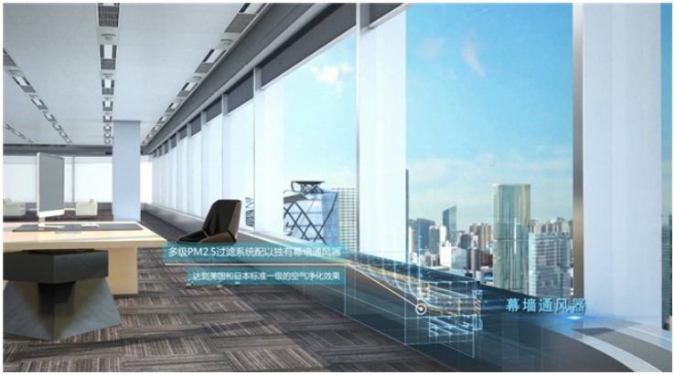 圖注:正大中心配備多級(jí) PM 2.5 過濾系統(tǒng)和獨(dú)有的幕墻通風(fēng)器,保障寫字樓內(nèi)空氣質(zhì)量