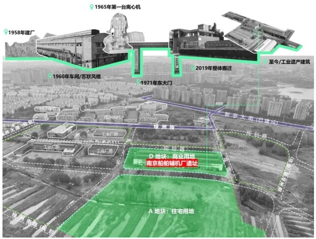 設(shè)計如何滿足城市更新的迫切需求?設(shè)計考慮D地塊與周邊地塊形成船舶工業(yè)遺跡群,工業(yè)歷史文脈清晰,設(shè)計以新舊對話形式,規(guī)劃A、D兩地塊聯(lián)合打造。