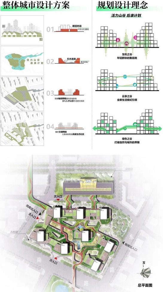 以“活力山谷,造浪計劃”為設(shè)計思路,通過“引水造浪”煥新老船廠空間活力。搭建軸線網(wǎng)格重構(gòu)場地脈絡(luò),在A地塊形成人才山谷居住組團,編織兩地塊多維立體交通網(wǎng)絡(luò),大面底板營造高面生態(tài)社區(qū)。