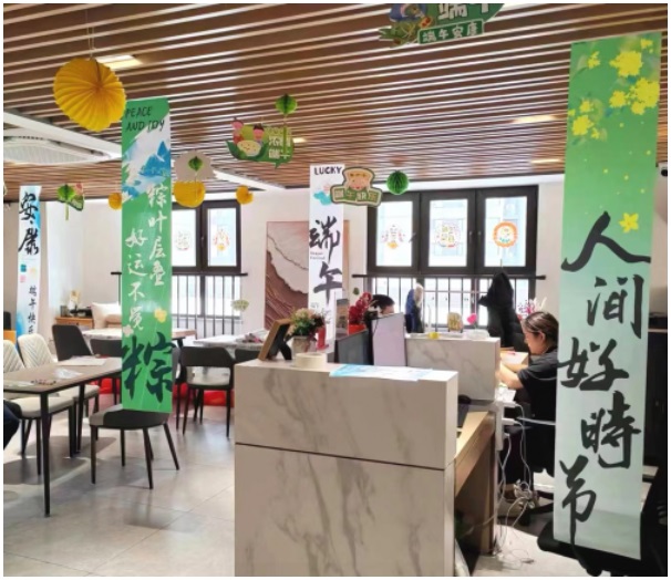 端午佳節(jié),越秀星寓管家們親手精心布置,融合傳統(tǒng)與現(xiàn)代元素,讓公寓充滿歡樂的節(jié)日氛圍,生動(dòng)而溫馨。走進(jìn)越秀星寓的荔灣花海店、珠江新城店、濟(jì)南高新萬達(dá)店、三元里店立刻能感受到濃濃的節(jié)日氛圍,竹葉的翠綠、絹花的艷麗、燈籠的點(diǎn)綴,粽子的香氣交織在一起,營(yíng)造一個(gè)充滿詩意和遠(yuǎn)方的古典畫卷。