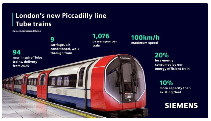 倫敦地鐵上有超過10%的旅程是在皮卡迪利線上進行的,線路從北部的Cockfosters、West End、Hammersmith和阿克頓(Acton town),并分支到希思羅機場(Heathrow Airport)和Uxbridg/Rayners Lane,皮卡迪利線車廂的換新,將大大增強這條倫敦交通動脈的活力。