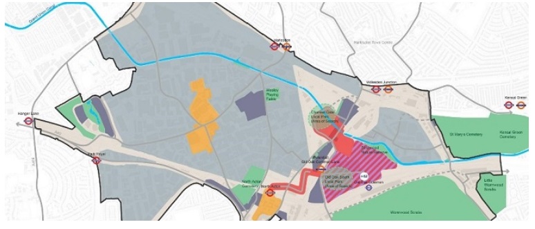 高密度的交通為區(qū)域發(fā)展打下堅實基礎(chǔ)的同時,倫敦最大的改造計劃也坐落于此。2015年,倫敦市長批準(zhǔn)了Old Oak and Park Royal地區(qū)的規(guī)劃戰(zhàn)略。鑒于規(guī)劃的規(guī)模宏大,同年成立了專門的Old Oak and Park Royal Development Corporation(OPDC)來負責(zé)該地區(qū)的重建工作。2022年的OPDC《Local Plan》確立了從2018年到2038年的20年深度地區(qū)改造規(guī)劃。