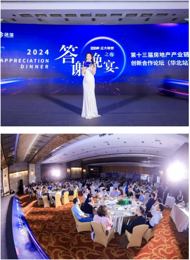 在上午的供需對(duì)接會(huì)、下午的主題演講、高峰對(duì)話等精彩環(huán)節(jié)之后,由正大制管冠名的第十三屆房地產(chǎn)產(chǎn)業(yè)鏈創(chuàng)新合作論壇(華北站)——答謝晚宴在華麗的開(kāi)場(chǎng)表演中拉開(kāi)帷幕!