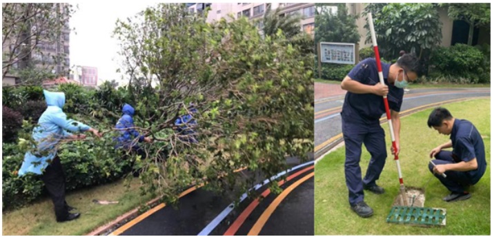 狂風(fēng)過(guò)后,樹枝凌亂,安全隱患凸顯。物業(yè)人員迅速行動(dòng),清理那些有安全隱患的樹枝,同時(shí)對(duì)被風(fēng)吹倒的樹木進(jìn)行精心加固,讓道路重新恢復(fù)安全與暢通。工程人員也在第一時(shí)間巡視項(xiàng)目的設(shè)備設(shè)施,排查暴雨后的安全隱患。保潔人員也不甘示弱,他們忙碌地清理著水漬,一遍又一遍地沖洗、清掃,只為讓我們的家園盡快擺脫雨水的痕跡,恢復(fù)往日的整潔。