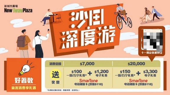 消費滿額優(yōu)惠大禮包:活動期間消費滿額,即可獲贈大額電子禮券以及SmarTone電話儲值卡,電子券可用于時尚及珠寶、美食、一田超市,回饋力度之大可謂空前。其中包括萬寧150元大額現(xiàn)金券,眾多好物都可實惠入手。