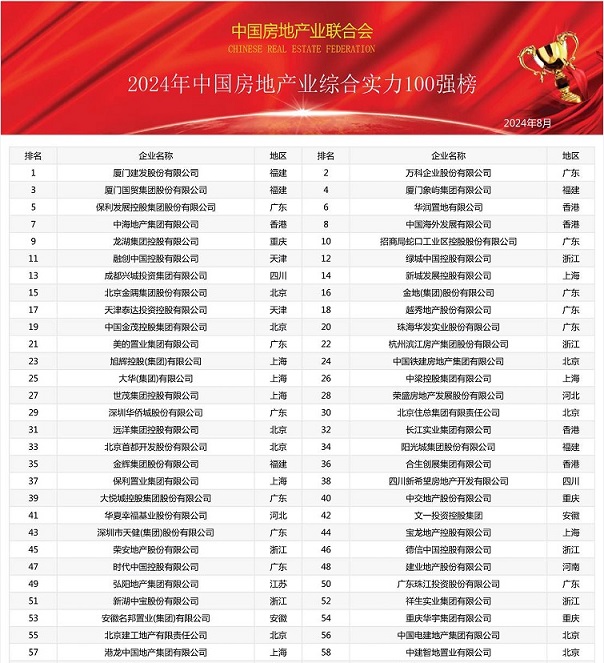 2024年,中國房地產(chǎn)行業(yè)在變革與挑戰(zhàn)中砥礪前行。近日,由中國房地產(chǎn)業(yè)聯(lián)合會隆重發(fā)布的《2024中國房地產(chǎn)業(yè)綜合實力100強榜單》,為行業(yè)帶來了新的活力與希望。