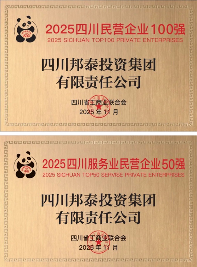 11月6日,在四川省工商聯(lián)合會(huì)主辦的2025四川民營(yíng)企業(yè)100強(qiáng)發(fā)布會(huì)上,邦泰集團(tuán)連續(xù)六年實(shí)力登榜,位列“2025四川民營(yíng)企業(yè)”第26位,“2025四川服務(wù)業(yè)民營(yíng)企業(yè)”第6位。