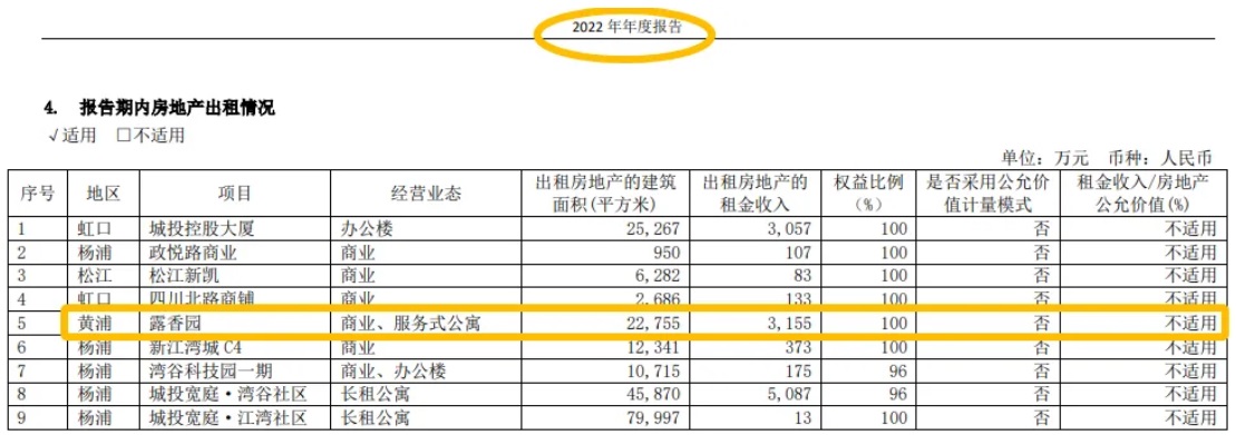 (城投控股2022年年報(bào),露香園用以出租的面積為22755㎡)