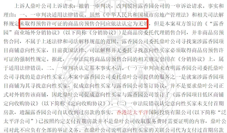 至于泛太平洋公司為何會(huì)就《收購(gòu)協(xié)議》提起訴訟,從另一起案件中也能看出端倪。裁判文書(shū)網(wǎng)案號(hào)(2020)滬02民終6203號(hào)判決書(shū)顯示,在露香園與泛太平洋公司簽訂收購(gòu)協(xié)議時(shí),其低區(qū)商鋪并未取得商品房預(yù)售許可證。