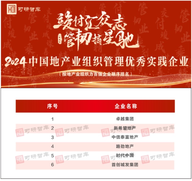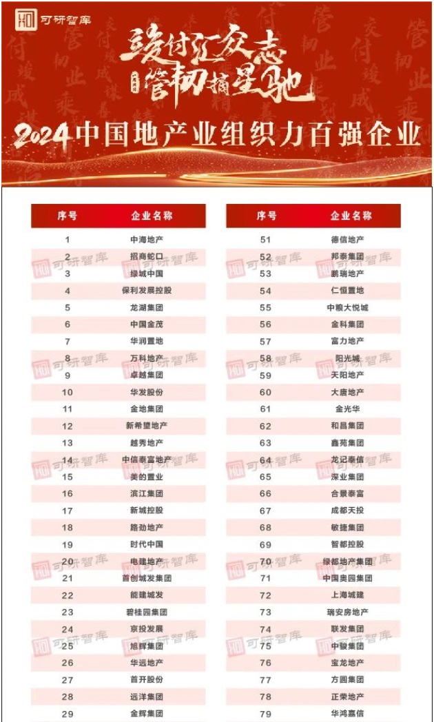 “2024中國地產業(yè)組織力百強企業(yè)”