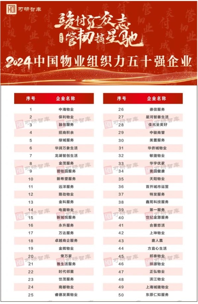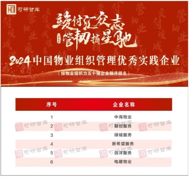 “2024中國物業(yè)組織力五十強企業(yè)”