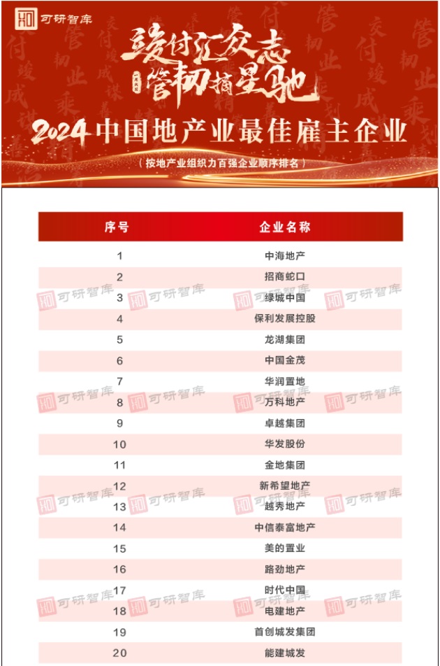更多數(shù)據(jù)請關注并咨詢:可研智庫《2024中國地產、物業(yè)組織力及雇主影響力研究報告》。