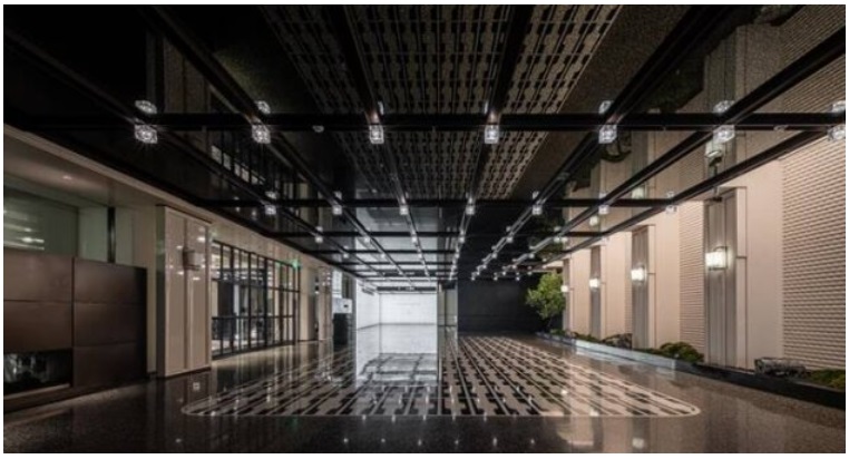 「藏錦」以藝術匠心打造地庫歸家空間,步步成景。地下歸家大堂外延,仿古鏡吊頂?shù)褂尘穹,銅條與環(huán)氧磨石無縫拼接,搭配陣列式立柱,共筑儀式感歸家之路。