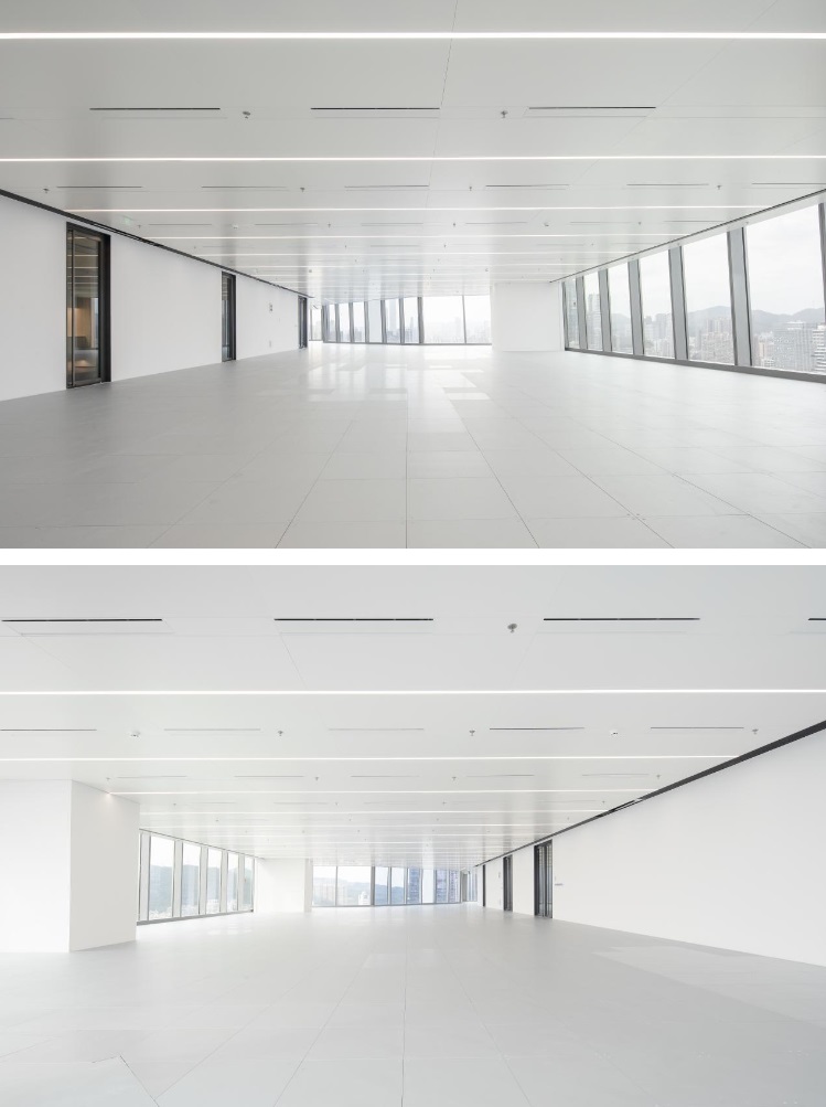 對(duì)于內(nèi)部空間的營造,更是構(gòu)建了匹配企業(yè)多元化的科學(xué)布局,建面約300-3400㎡全面積段,精裝和交標(biāo)可供客戶自主選擇;無柱式的設(shè)計(jì),最長32米無遮擋玻璃幕墻,采用三層中空Low-E超白玻璃幕墻,高效隔音降噪的同時(shí),最大化映現(xiàn)山與城的繁華窗景,匹配企業(yè)的無限襟懷;