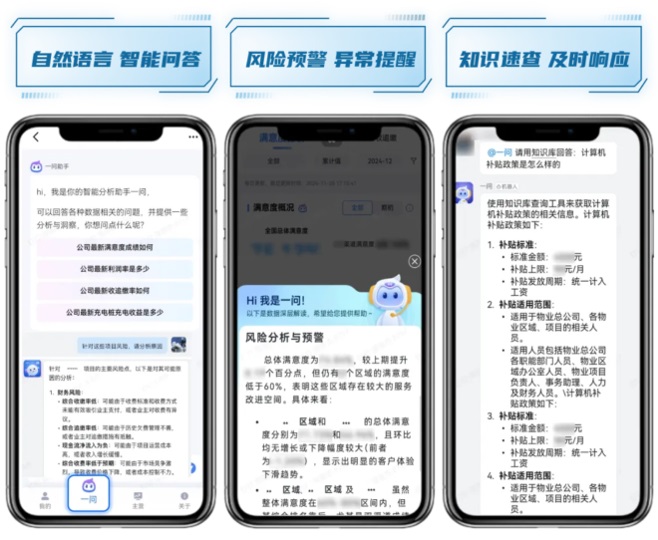 “零號(hào)助理.一問(wèn)”覆蓋全鏈條、穿透物業(yè)管理各業(yè)務(wù)領(lǐng)域,深度挖掘數(shù)據(jù)價(jià)值,識(shí)別業(yè)務(wù)趨勢(shì),預(yù)測(cè)市場(chǎng)變化,進(jìn)行智能數(shù)據(jù)分析,支撐業(yè)務(wù)快速?zèng)Q策,提升各級(jí)管理工作效率和決策質(zhì)量。